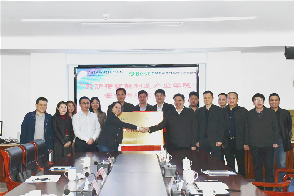 签约仪式上,学校与贝斯特有限公司共同签署了协议书,校企双方共同为贝斯特智能制造产业学院揭牌。学校相关学院、职能处室负责人,贝斯特方相关部门负责人共同见证了此次签约揭牌。