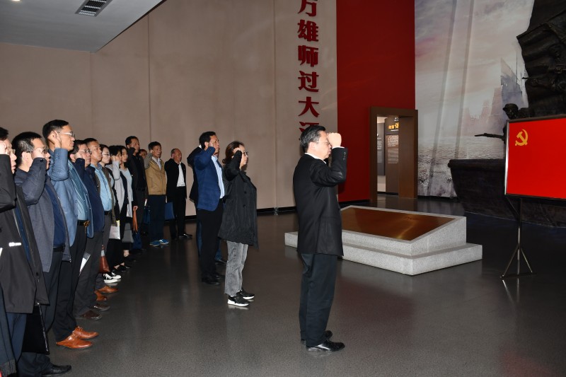 “我志愿加入中国共产党,拥护党的纲领、遵守党的章程……”在渡江战役纪念馆前,面对鲜艳的党旗,学校党委书记、校长李虎带领党委理论学习中心组成员重温入党誓词,重忆入党初心。铿锵恢宏的誓词,强烈震撼着在场的每一位党员,一字一句,神圣而豪迈,铮铮誓言,体现了党员同志们对中国共产党的无限忠诚,坚定了入党使命,奋斗初心。