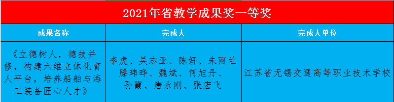 近年来,学校聚焦人才培养模式、课程体系、教学模式改革等职业教育中的热点、难点问题,全方位推动人才培养的改革创新,全面提升人才培养水平,形成了一批高质量的教育教学成果,其中《立德树人,德技并修,构建六维立体化育人平台,培养船舶与海工装备匠心人才》是学校教育教学改革成效的典型案例。