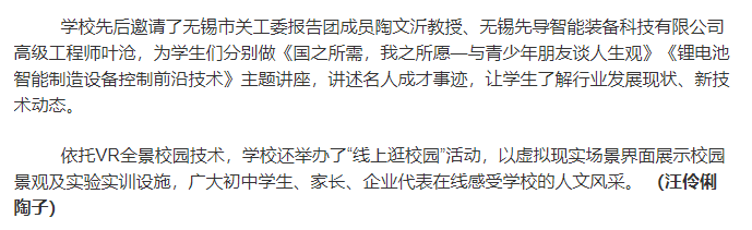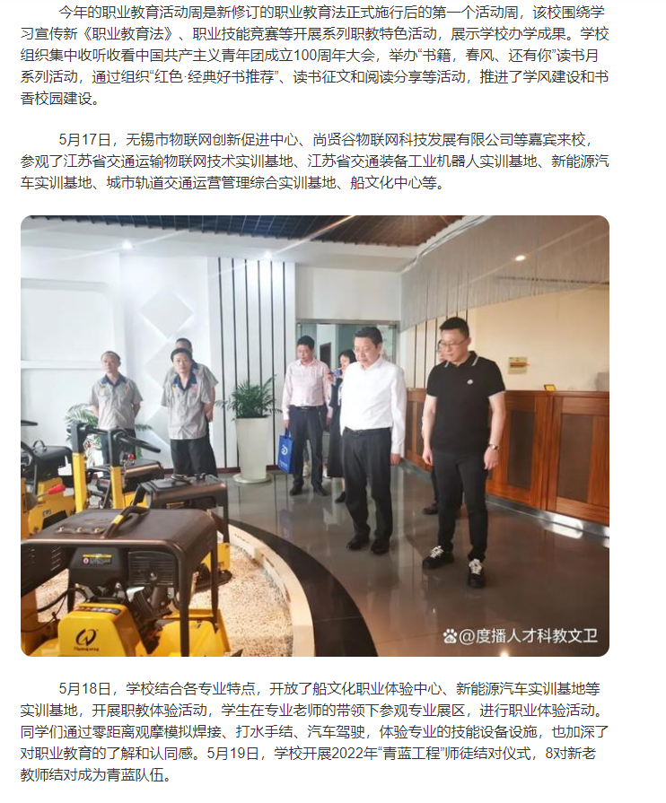 现代快报:推出多彩“职教活动周”,无锡交通高职校学生开展职业体验活动