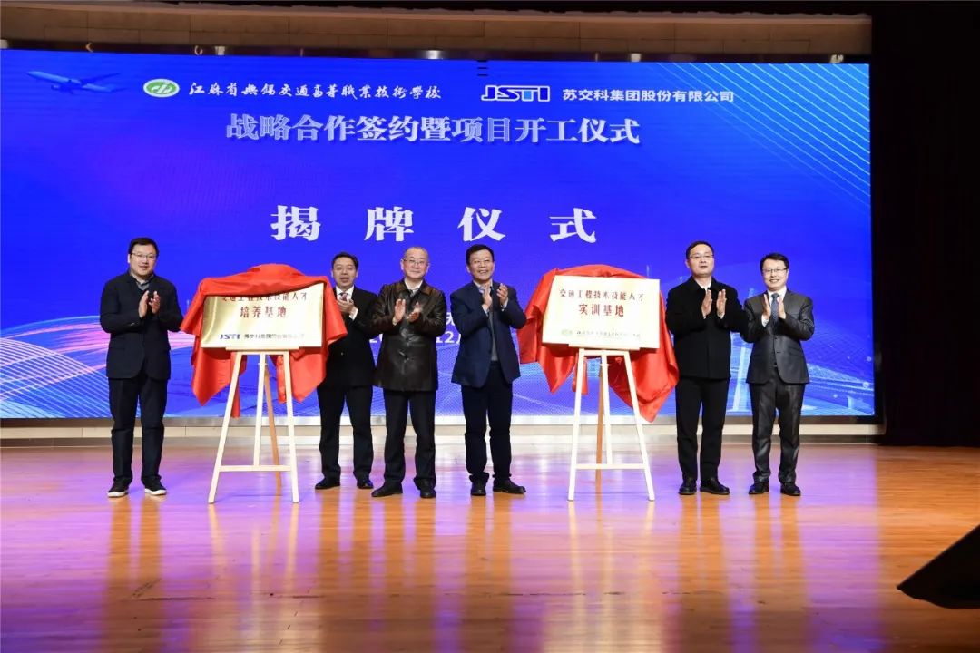 金凌副厅长、夏成满书记、朱晓宁总裁、李虎书记、俞刚局长、惠恭健副局长共同见证战略合作协议的签订,共同为“苏交科集团交通工程技术技能人才培养基地”和“开云·官方端网页版登录入口技术技能人才实训基地”揭牌,并启动生产性交通工程试验检测中心项目开工仪式。