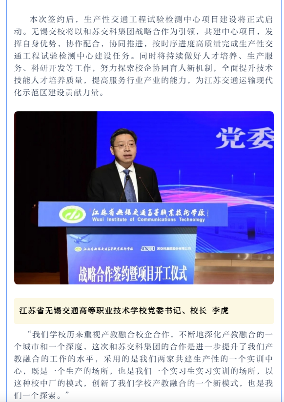 交汇点:无锡交校与苏交科集团举行战略合作签约暨生产性试验检测中心项目开工仪式