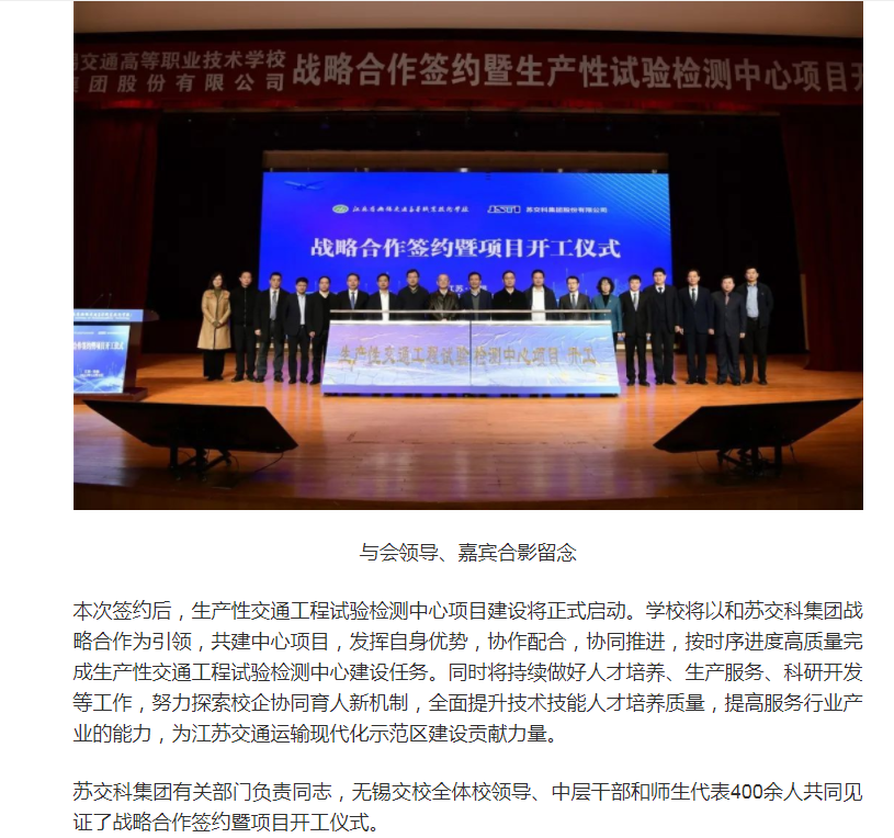 下一篇: 无锡博报:无锡交校与苏交科集团共建生产性交通工程试验检测中心项目正式启动(视频版)