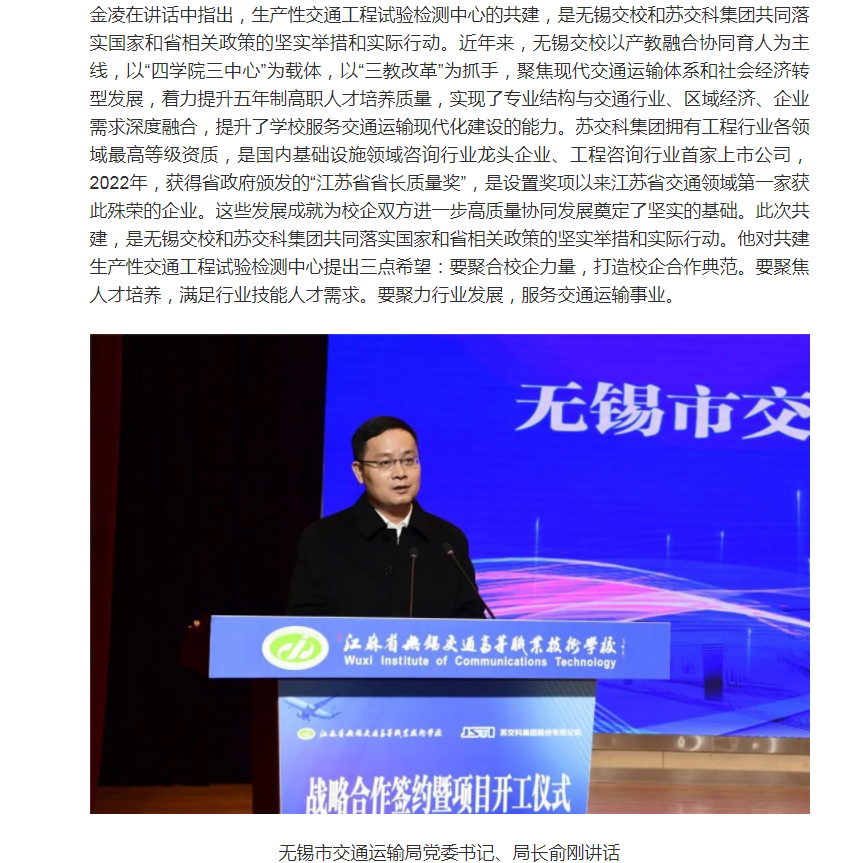 人民日报:无锡交校与苏交科集团举行战略合作签约暨生产性试验检测中心项目开工仪式