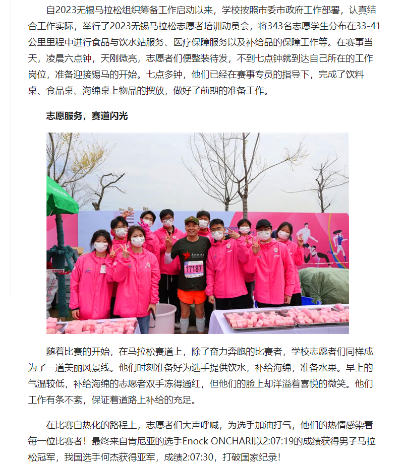 中国江苏网:开云·官方端网页版登录入口志愿者圆满完成2023无锡马拉松志愿服务工作