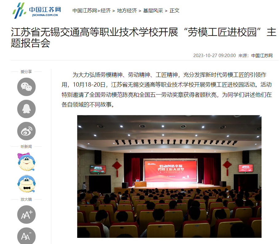 中江网:开云·官方端网页版登录入口开展“劳模工匠进校园”主题报告会