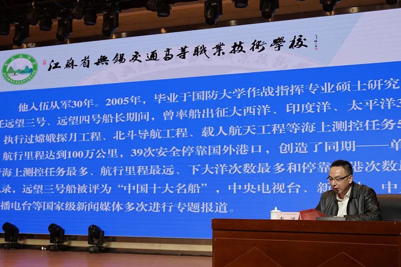 11月15日,学校举办惠山大讲堂,邀请无锡市水利局党组成员、副局长、原远望三号、四号测量船船长兰秀凯为全体教职工、学生代表讲授题为《不忘初心 知责思为——沿着党旗指引的方向砥砺前行》专题报告会。报告会由学校校长、党委书记李进主持。