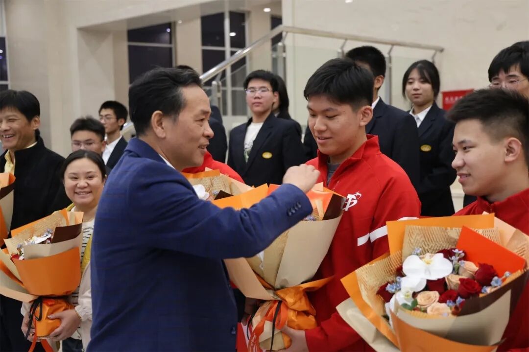 10月30日下午,学校举行欢迎仪式。在大赛领队、学校党委副书记朱雨兰老师的带队下,我校获奖选手陈玺和浦豪文携荣誉凯旋而来。学校党委委员、副校长耿兴华向获奖选手表示祝贺:“祝贺你们取得可喜的成绩,也感谢你们的努力拼搏,为江苏争光、为学校争光!”参赛选手陈玺和浦豪文则表示:“取得满意的成绩,要感谢学校的培养,感谢大赛主办方提供的竞技平台,感谢指导老师的辛勤关怀,希望在今后学习生活中也将不断提升自身技能,努力为学校争光。”获得“优秀指导教师”称号的李俊、沈加仁老师表示,“感谢学校提供的这样一个成长锻炼的平台,通过这次大赛为今后指导学生比赛工作积累不少经验,也为后续工作打下扎实的基础。”周围不断响起热烈的掌声。