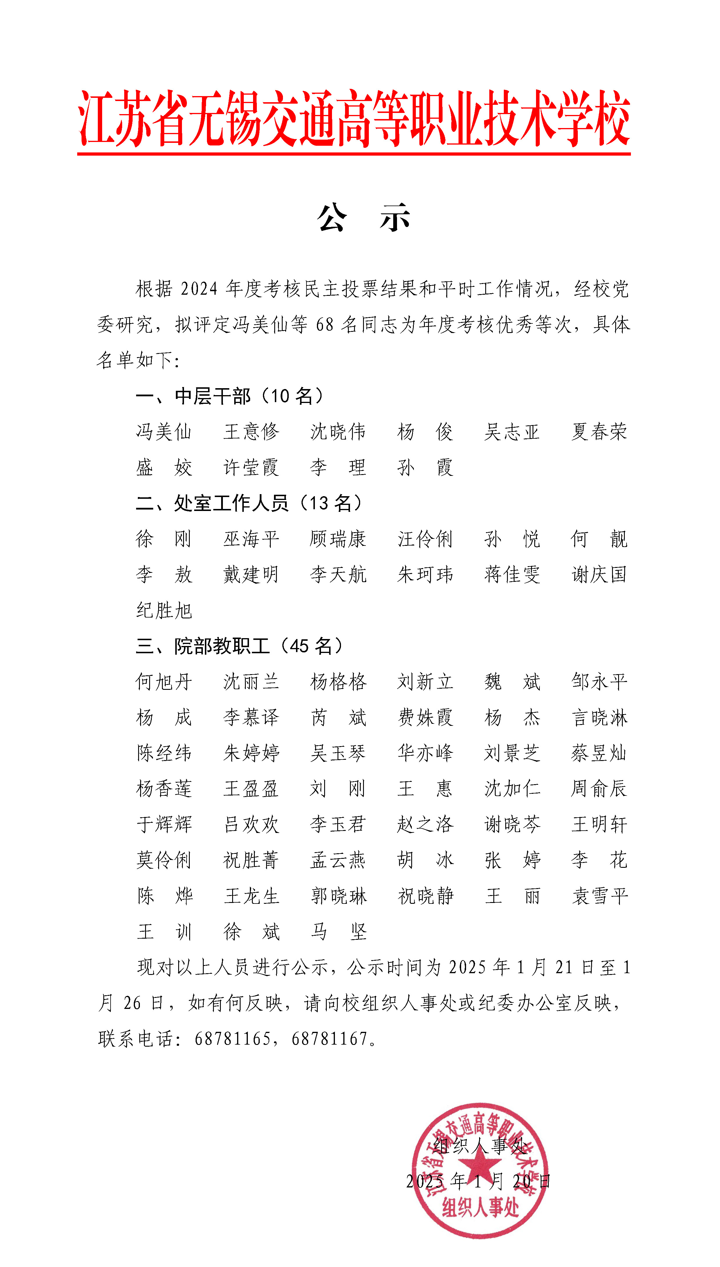 2024年度考核优秀等次人员名单公示