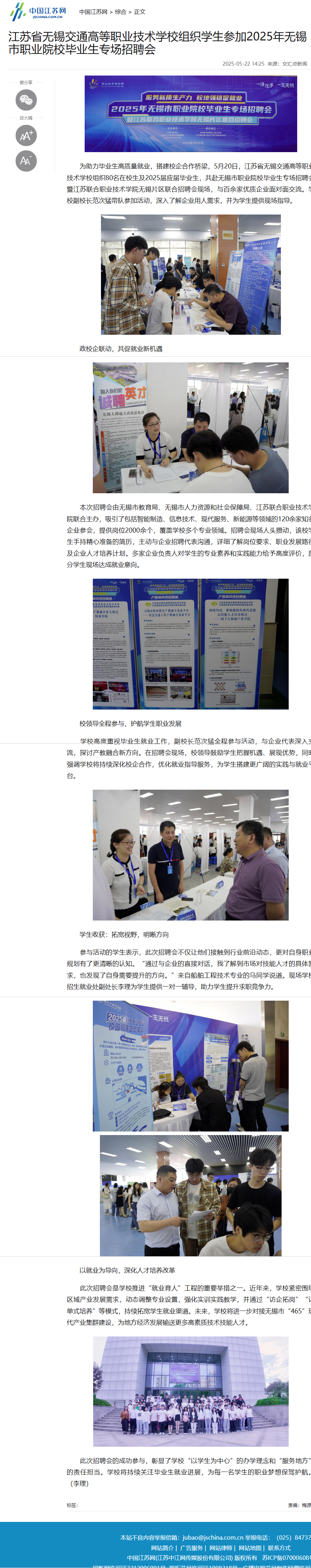 中江网:开云·官方端网页版登录入口组织学生参加2025年无锡市职业院校毕业生专场招聘会