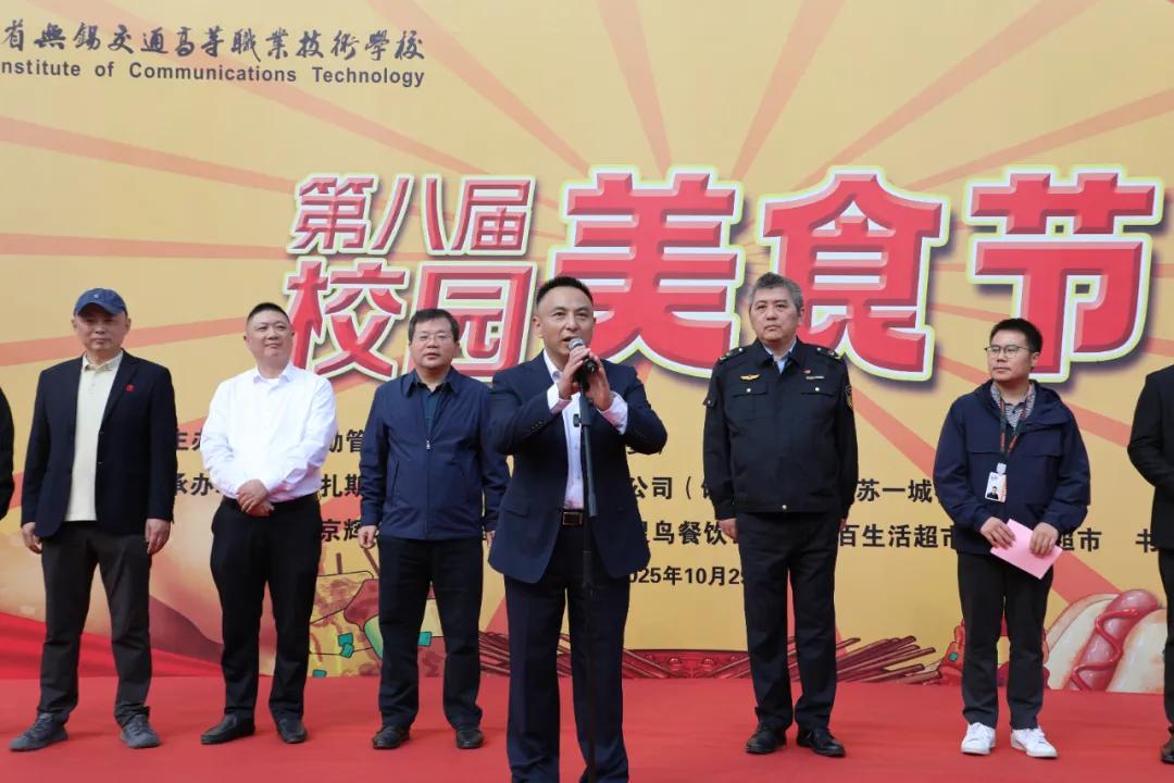 本次美食节以“食力全开、运动嗨翻”为主题,恰逢美食节与校运动会同时开展,旨在通过展示美食文化、运动会上运动健儿风采,丰富校园文化生活。学校党委书记李进,副校长范次猛出席开幕式。无锡市滨湖区市场监督局荣巷分局副局长姚鹤频,饿了么江苏区域经理卢军,江苏一城謇餐餐饮管理有限公司总经理包海峰,南京辉玲缘餐饮管理有限公司总监邓义斌,北京百灵鸟餐饮管理有限公司副总经理马建栋,集百生活超市区域经理鹿存飞,浙江虹盛食品有限公司区域经理刘炯玮参加了开幕式。