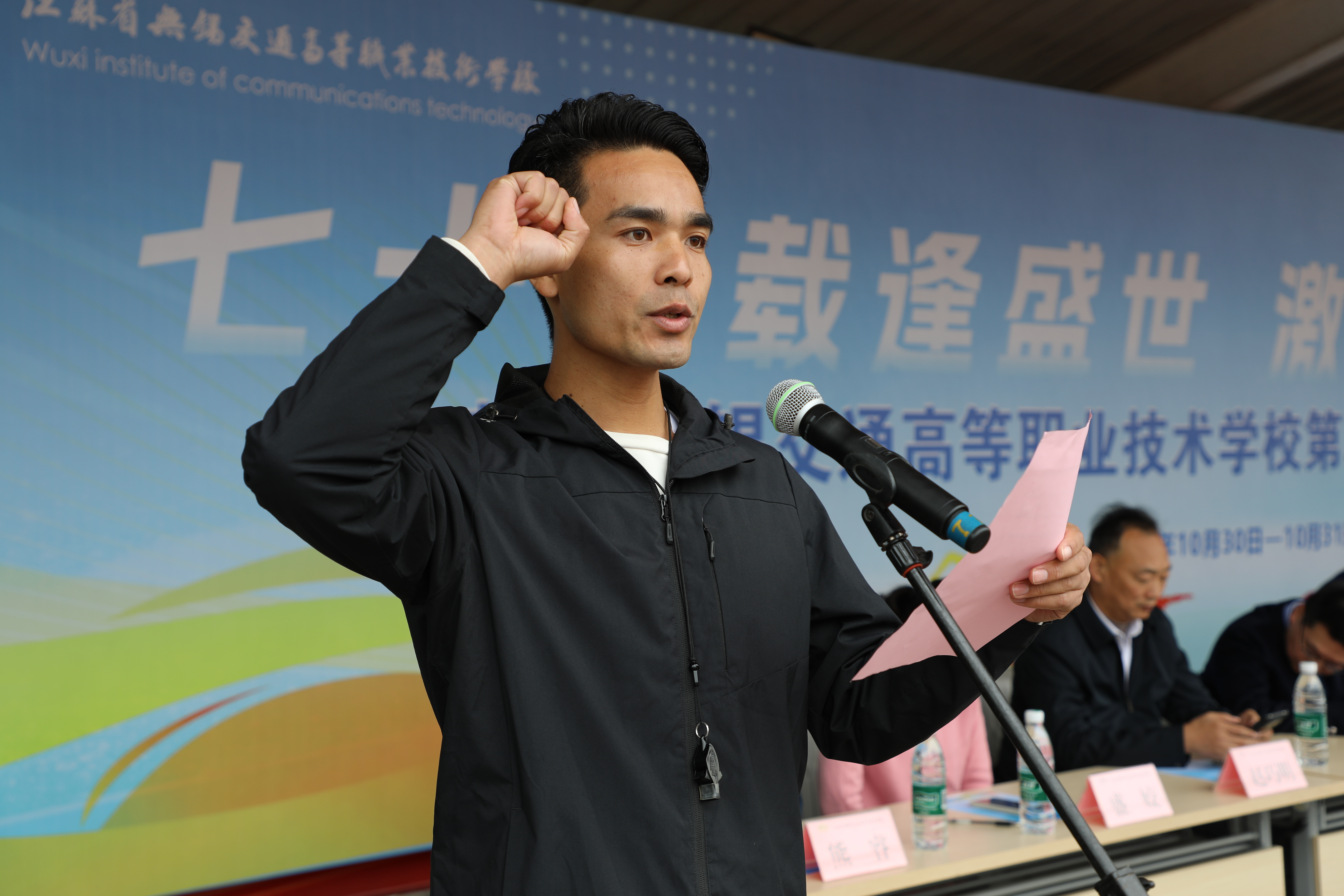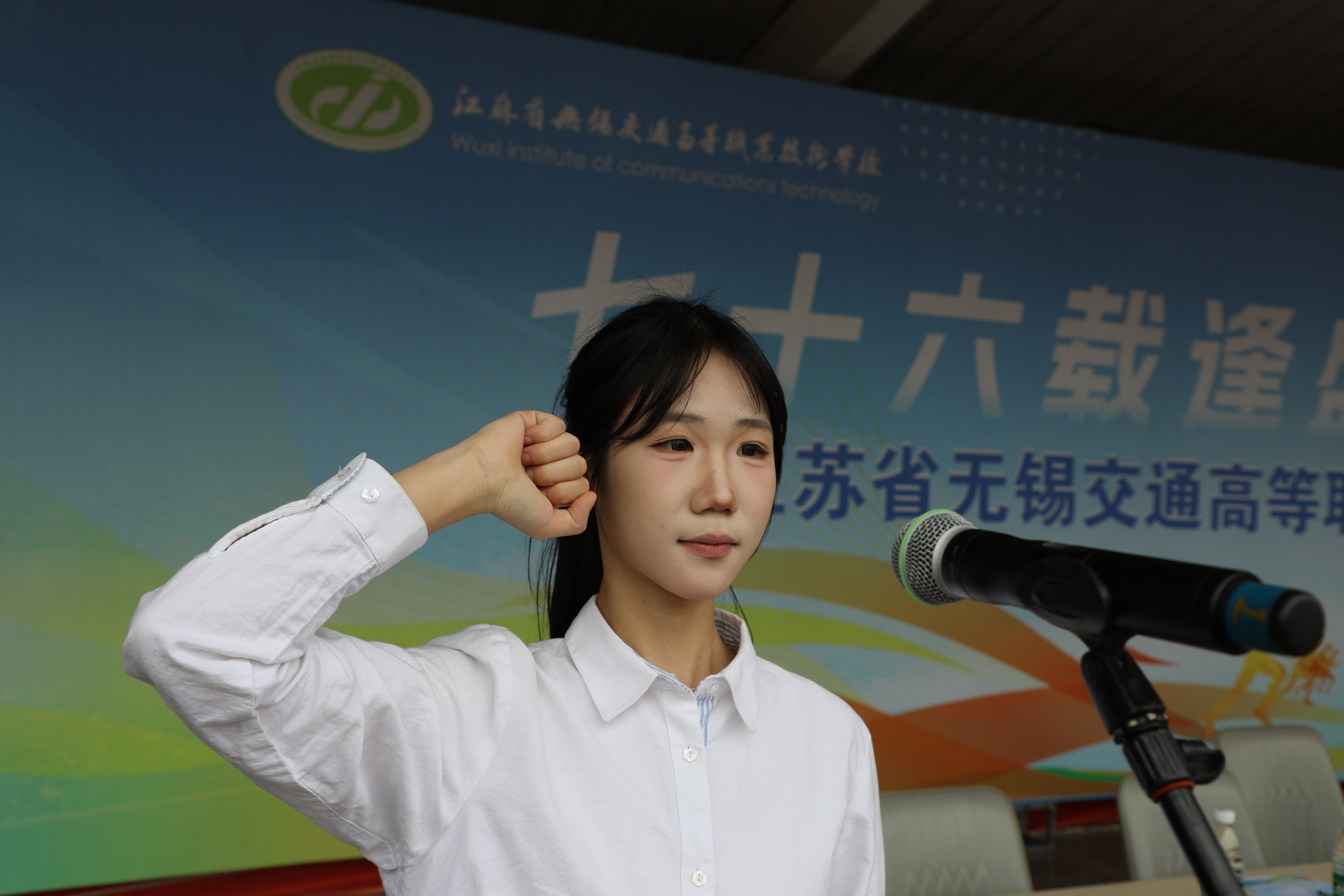 运动员代表毋雪华同学和裁判员代表李亚鲁老师分别上台宣誓,承诺将秉持公平、公正、公开的原则参与比赛和裁判工作,确保运动会的顺利进行。