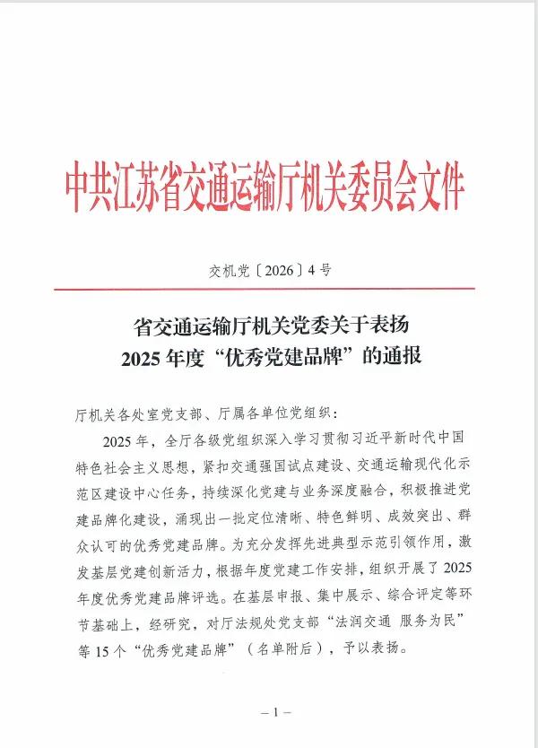 近日,江苏省交通运输厅通报表彰2025年度全厅“优秀党建品牌”。我校机电教研室党支部打造的“机电芯”党建品牌,以党建引领团建,融合“党建+专技+发展+服务”的特色,通过实践成效显著。该品牌在基层申报、集中展示、综合评定等环节中脱颖而出,成功获评,成为基层党建与团建、教科研、服务融合育人的典范。