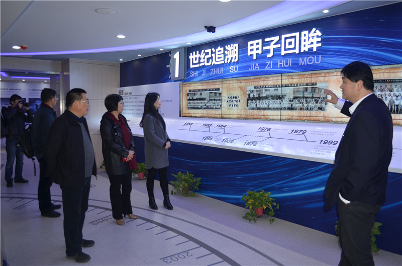 座谈会前,周传林书记一行在党委副书记、纪委书记朱雨兰的陪同下,参观了我校党建文化长廊、校史馆、焊接实训中心、新能源实训中心。
