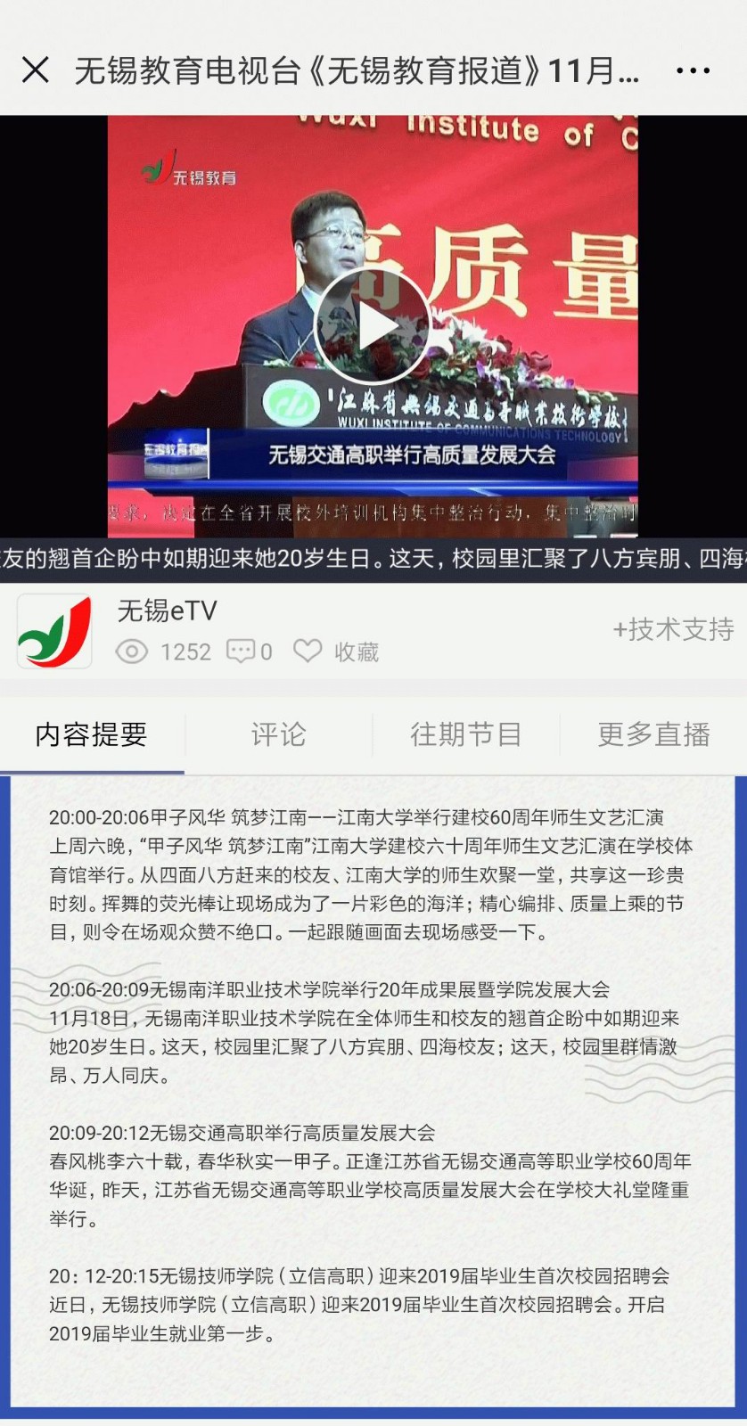 无锡教育电视台《无锡教育报道》报道无锡交通高等职业学校举行高质量发展大会