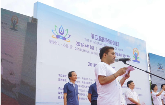 在联合国第四届国际瑜伽日来临之际,为促进中印经贸文化交流与合作,推动全民健身,以“新时代·心能量”为主题的“2018中国(无锡)国际瑜伽节”于6月16上午在无锡太湖新城贡湖湾湿地的水韵广场拉开帷幕,我校40名女子瑜伽爱好者参与了大会。