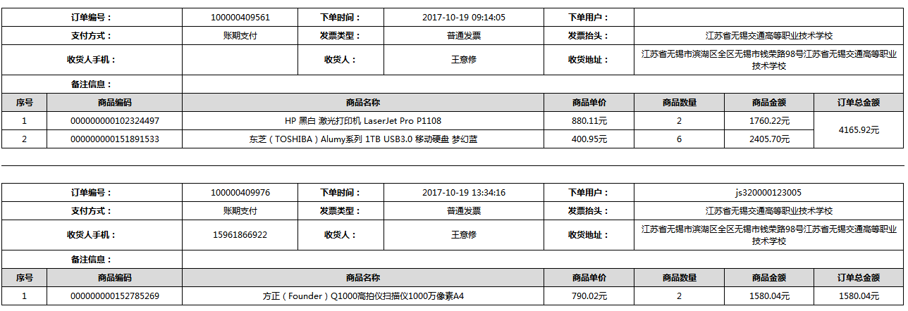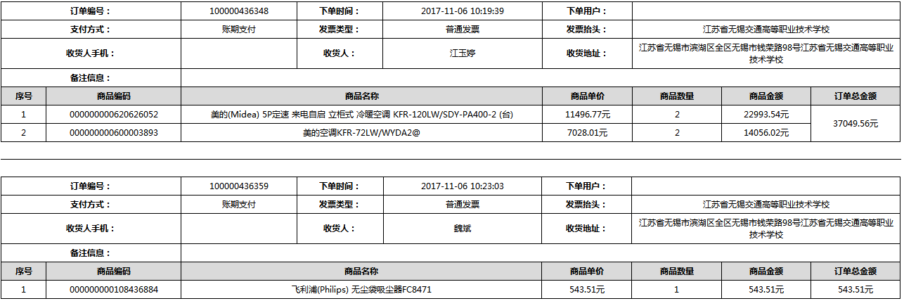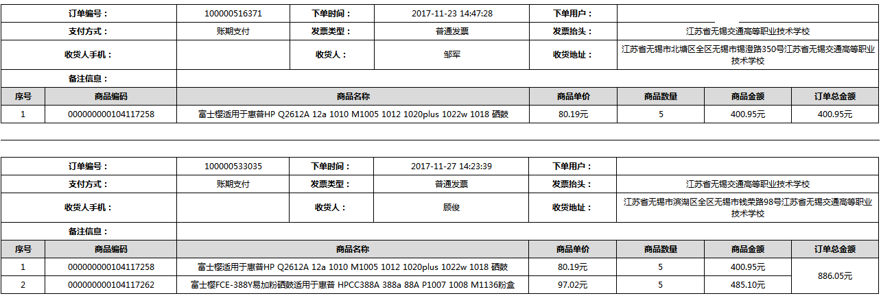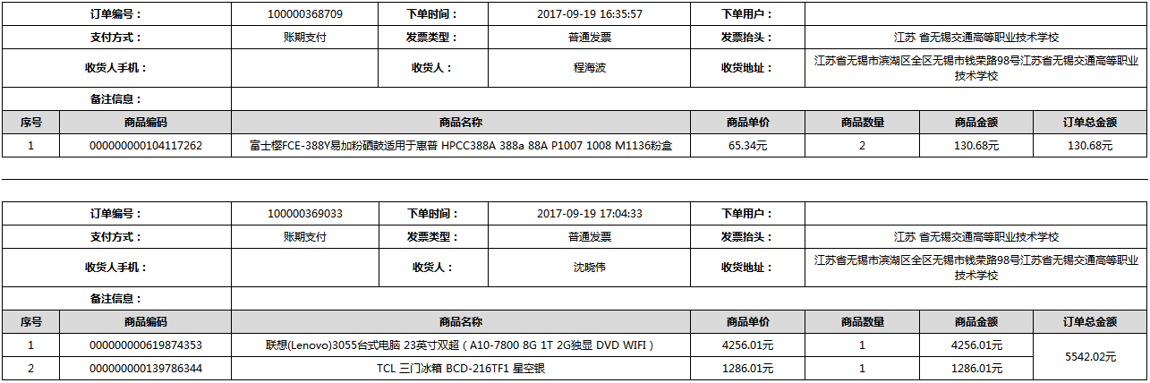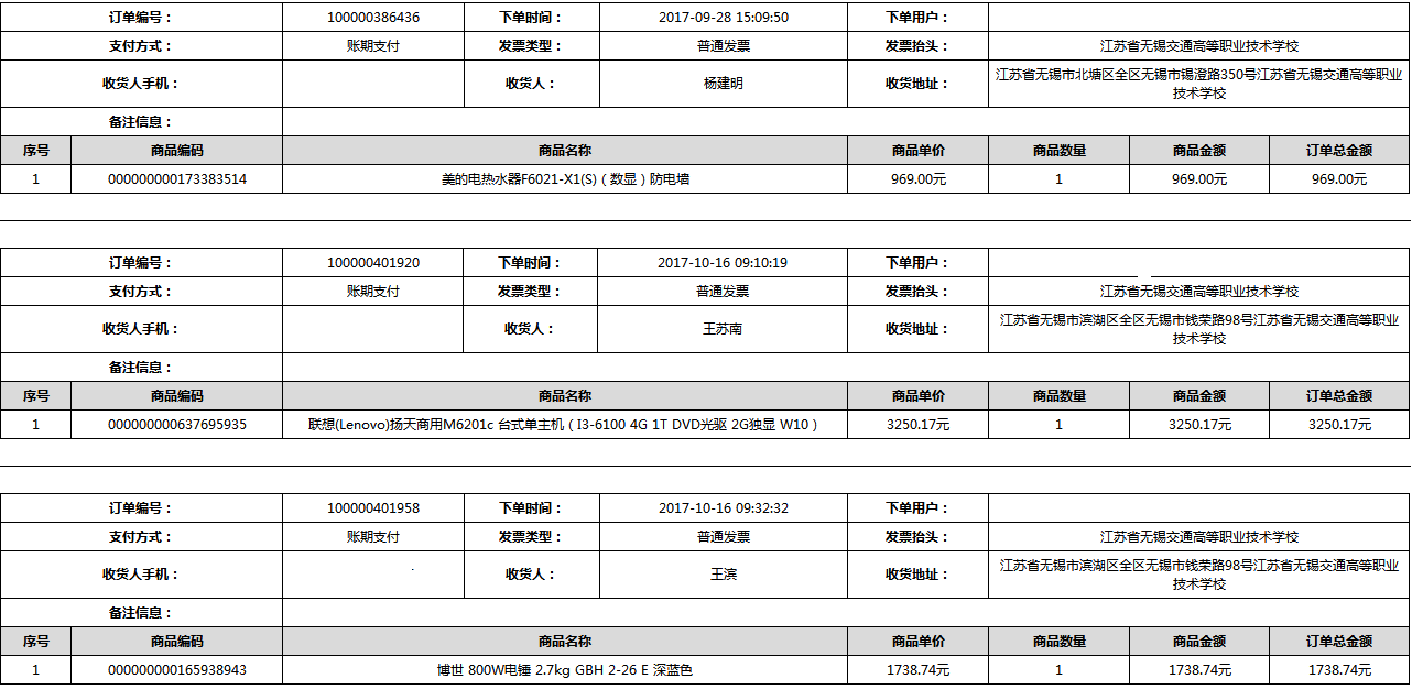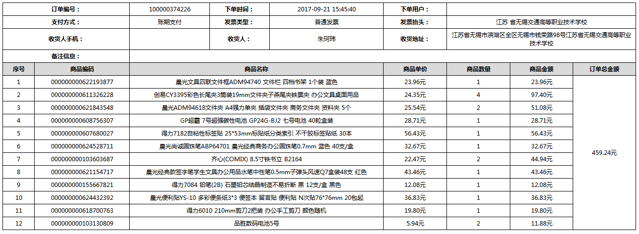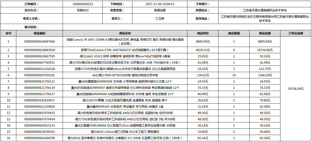 根据江苏省财政厅政府采购《关于在省级预算单位实行网上商城采购的通知》苏财购(2015)45号、《江苏省省级政府采购网上商城管理暂行办法》苏财购〔2015〕48号、《关于网上商城采购有关事项的补充通知 》苏财购〔2016〕18号、《关于推广江苏省省级政府采购网上商城采购有关工作的通知 》苏财办〔2016〕42号相关文件精神,建立江苏省省级政府采购网上商城专属采购平台。结合《关于省级“网上商城”支付方式的政策说明》及我校实际。依据《转发财政部关于进一步做好政府采购信息公开工作有关事项的通知》苏财购[2017]50号现就2017年9月14日-2017年11月27日网上商城采购订单明细进行公示: