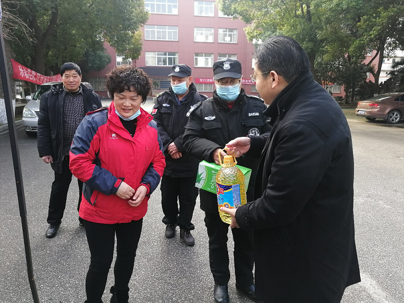 在慰问工作中,首先李虎书记代表校领导班子给担负寒假校园值守的值班老师和保安人员送上慰问品并详细询问了在岗值守的情况;其次,还走到值班室查看了办公和值班休息室的改造情况,要不断改善校园值班值守场所的工作条件,使值班人员能安心、尽心、全身心的投入校园安全值守工作,确保校园安全稳定。