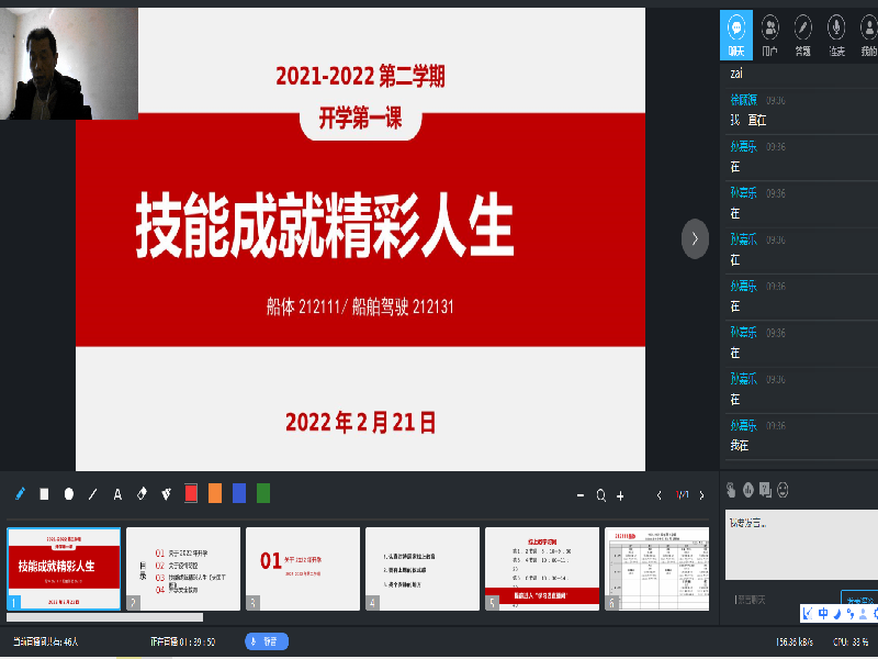 为深入贯彻落实习近平总书记关于技能人才的重要指示精神,引导学生做好开学准备、疫情防控等相关工作,221日上午,船舶工程学院组织各班级开展线上“开学第一课”学习活动。