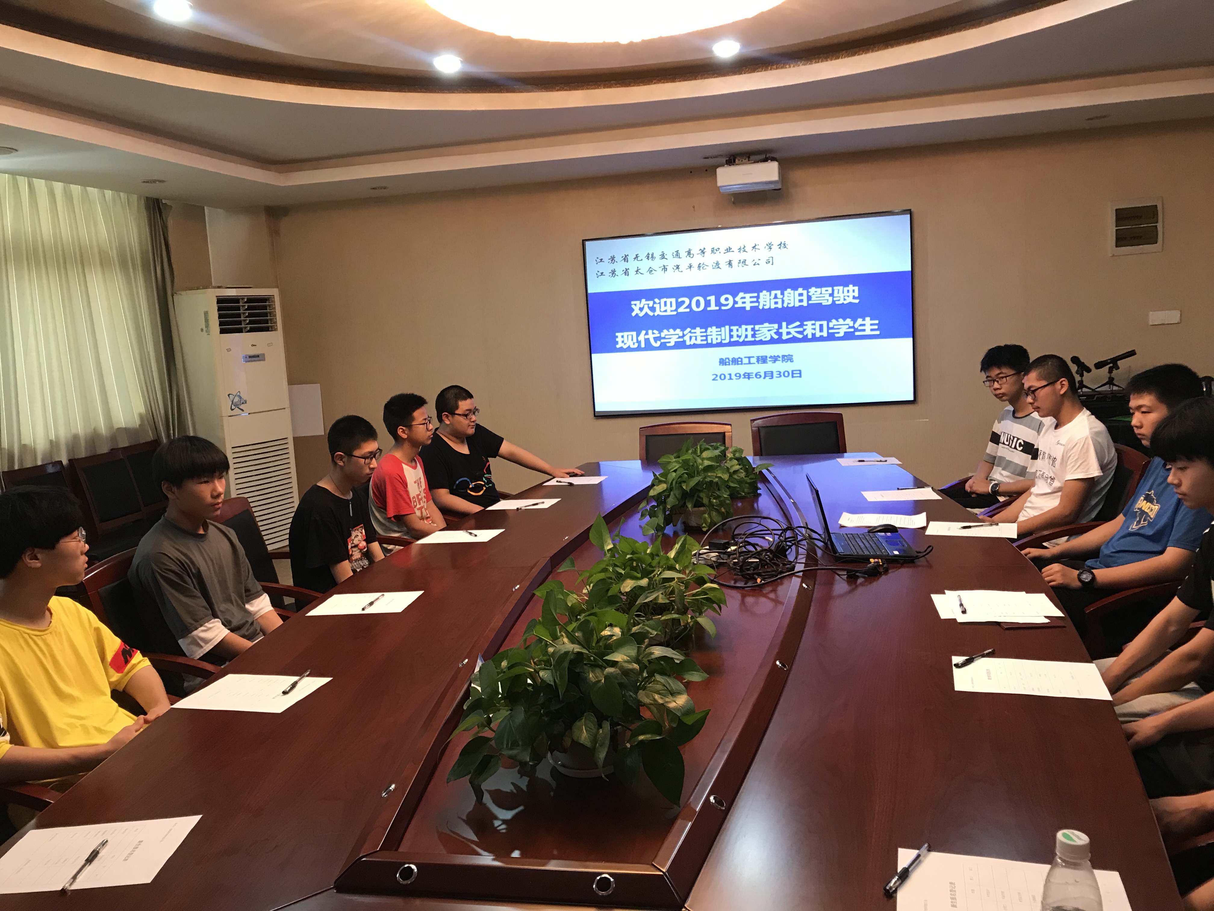 2019年6月30日下午,2019级船舶驾驶专业现代学徒制班级,“太海汽渡”班的12名新生学生和新生家长来校参观报名。副校长耿兴华,船舶工程学院党总支书记吴志亚,参加了此次座谈。