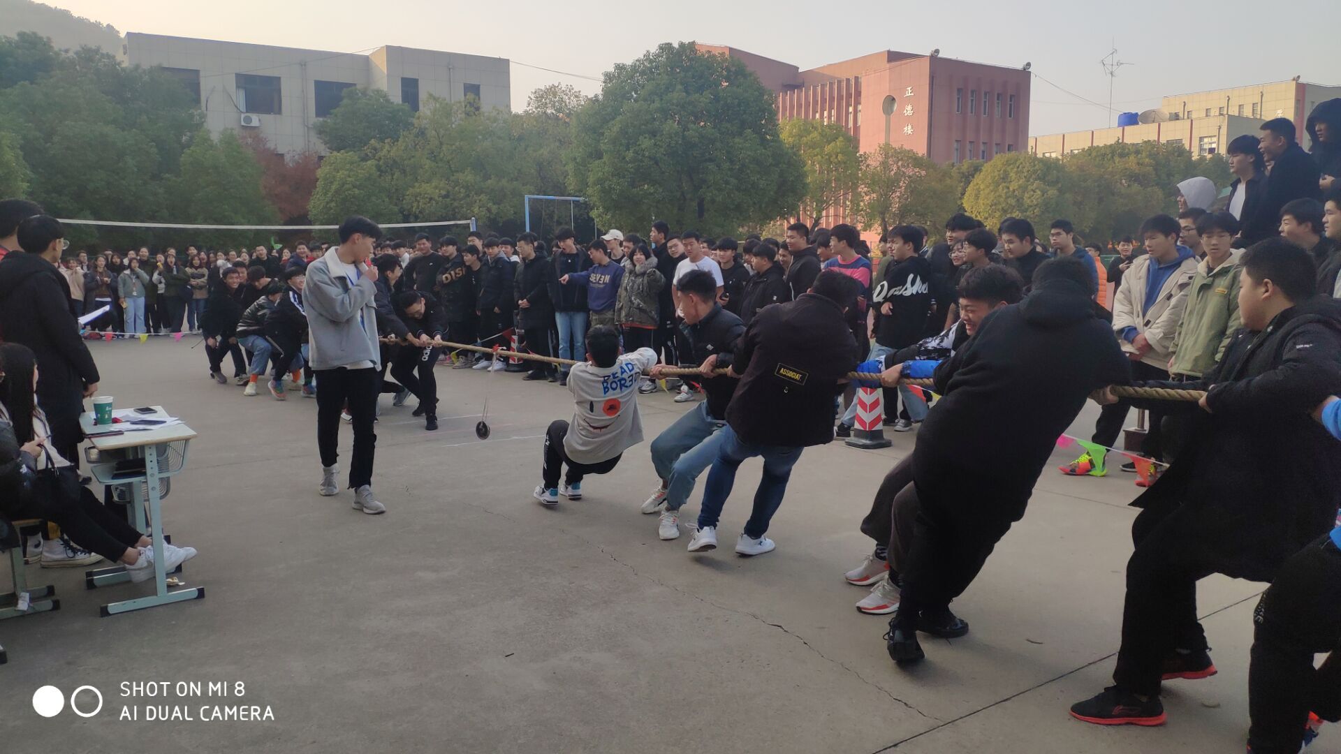 12月11日,我院学生会体育部本着“团结一致,友谊第一,比赛第二”的原则,举行了此次拔河比赛。此次比赛以班级为单位,每个班级选出男生十名,通过淘汰赛规则最终决出冠军、亚军和季军3个名次。我们本着公平、公正、公开的原则,对各班进行评比。每个班级都信心满满,激情 四射,每个参赛选手都昂首挺胸,场面热闹非凡,一条麻绳静静地躺在场地中央,等待它的是一场场激烈的战斗。