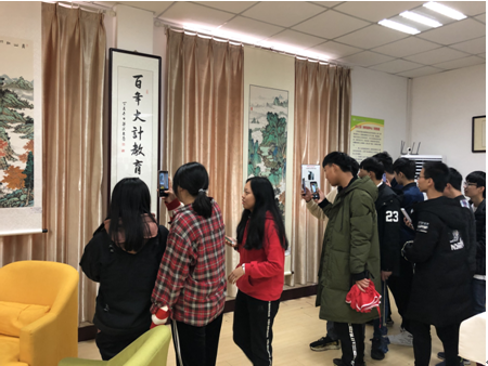 20181121日下午,船舶工程学院学生在校团委的安排下,于下午两点在团总支书记滕老师的带领下,来到校友书画作品展室进行系列参观。