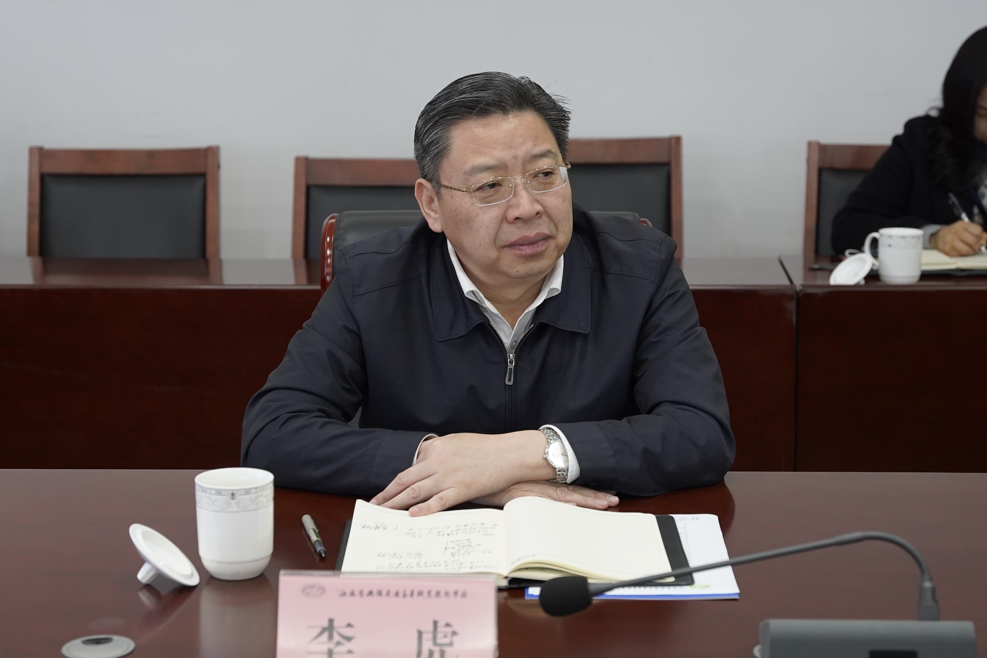 会上,李虎对张道林一行的来访表示热烈欢迎,他介绍了学校的办学特色。李虎提出,要继续发挥学校资源优势,优化专业结构,提高人才培养与产业发展的契合度,立足交通运输行业,完善产教融合协同育人机制,与苏富特开展全方位多层次的深度合作。
