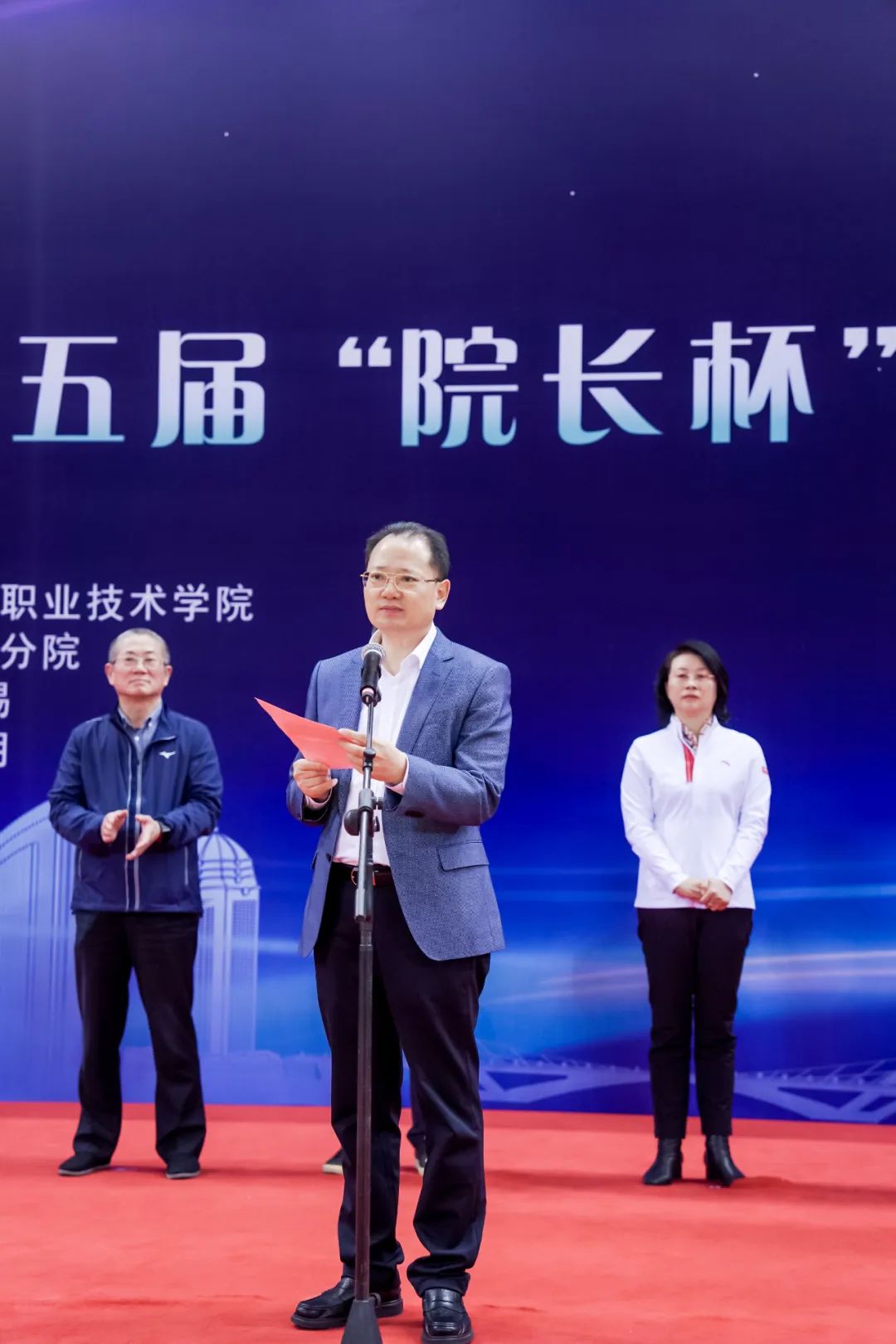 汪祝君代表江苏省交通运输厅对本次比赛的顺利举办表示祝贺,为江苏联院坚持举办”院长杯”乒乓球比赛的体育情怀致以崇高的敬意。他表示,“院长杯”的举办是深入贯彻习近平总书记关于体育的重要论述、落实体育强国建设的要求、响应全民健身国家战略的有利举措。比赛强化了院校之间的联系,增强了聚合度,提高联院办学社会影响力。各院校要将新时代体育精神与推动职业教育高质量发展融合起来,提高人才培养质量,为“强富美高”新江苏建设提供更多高技术技能人才支撑。