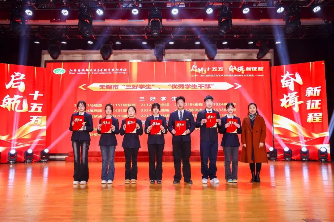 晚会首先举行颁奖仪式。校领导先后为2025年度在市级以上班主任能力大赛、省级以上创新创业大赛与职业技能竞赛、文体艺术赛事中荣获佳绩的师生代表,以及国家奖学金、校长奖学金、市级以上“三好学生”“优秀学生干部”获得者颁奖。一年来,学校坚持立德树人、以文化人,师生在各级各类平台屡获殊荣,展现了扎实的专业功底、出色的综合素养与昂扬的精神风貌。