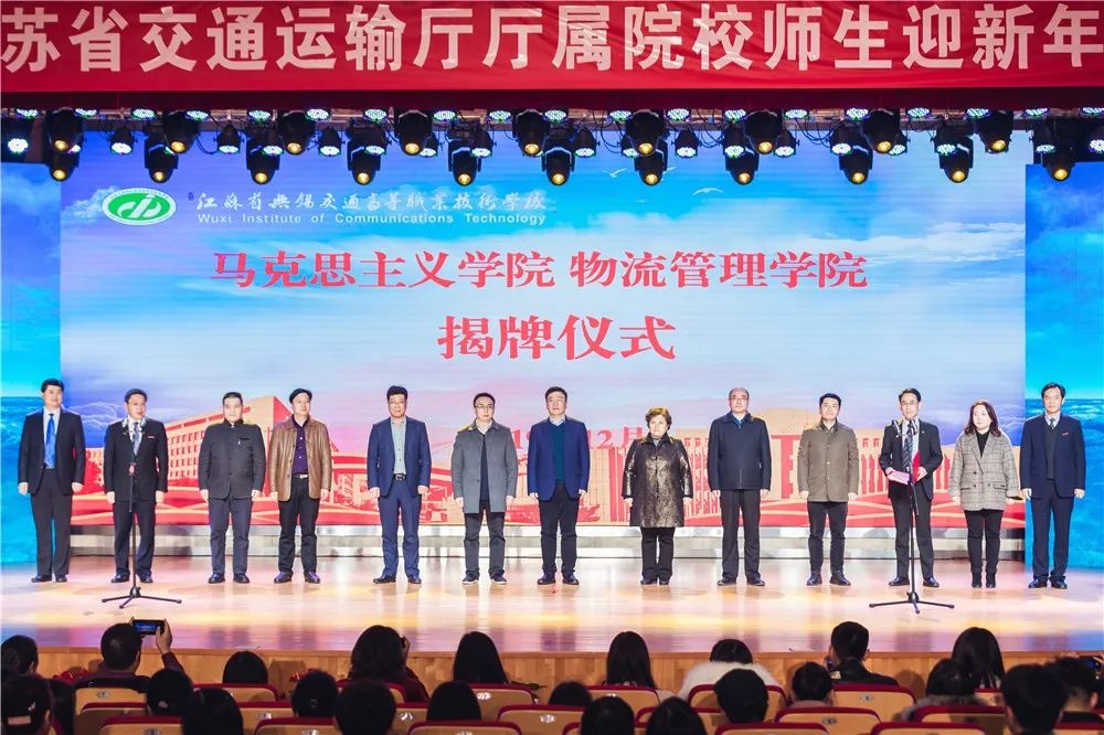 12月20日下午,学校马克思主义学院和物流管理学院揭牌仪式在大礼堂举行,江苏 省交通运输厅副厅长金凌、厅机关党委一级调研员王蕾,厅政治处副处级干部李进,厅政治处副主任科员王晓印和四所厅属院校的领导应邀出席大会。学校党委书记李虎,副校长耿兴华、邢勇出席揭牌仪式。揭牌仪式由校长陆春其主持。
