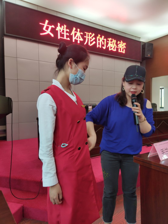 525,学校在学术报告厅举办女职工素质提升---《女性体形的秘密》的专题讲座。讲座邀请苏州大学艺术硕士、无锡太湖学院赵青教授来校主讲,近百名女职工代表和航空礼仪班的女学生参加了讲座。