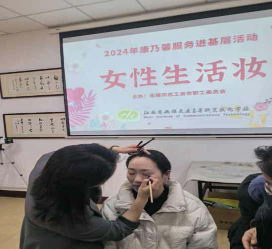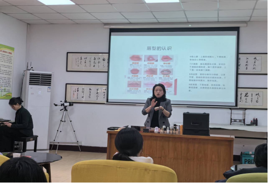 为切实关心女教职工的工作和生活,满足女教职工对美的需求,提升女教职工良好的职业形象,提高女教职工的幸福感,2024年3月13日下午,学校邀请了资深专业化妆师英子老师来校进行了“化出美丽,妆点人生”女性生活妆知识讲座,学校20多名女教职工参加了此次活动。