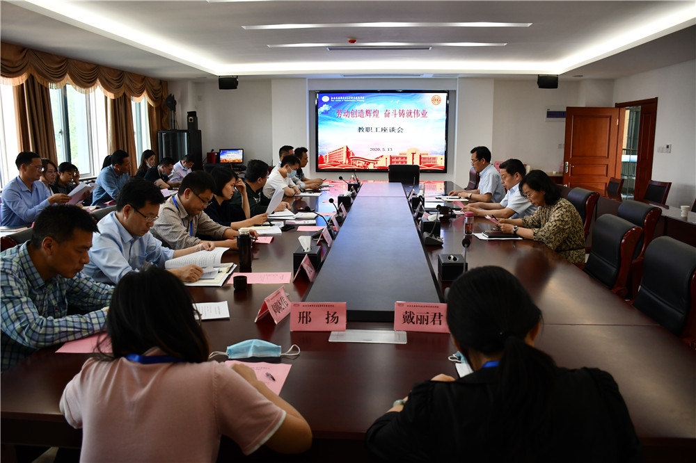 为大力弘扬新时代劳模精神和工匠精神,学习先进人物典型事迹,5月13号下午,学校召开“劳动创造辉煌 奋斗铸就伟业”为主题的教职工座谈会。学校党委书记李虎出席会议。学校党委副书记、纪委书记朱雨兰,中层干部代表,教师代表近30人参加会议,会议由副校长耿兴华主持。