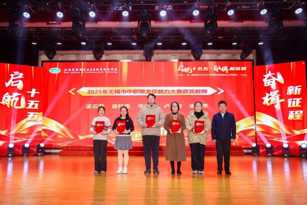 晚会首先举行颁奖仪式。校领导先后为2025年度在市级以上班主任能力大赛、省级以上创新创业大赛与职业技能竞赛、文体艺术赛事中荣获佳绩的师生代表,以及国家奖学金、校长奖学金、市级以上“三好学生”“优秀学生干部”获得者颁奖。一年来,学校坚持立德树人、以文化人,师生在各级各类平台屡获殊荣,展现了扎实的专业功底、出色的综合素养与昂扬的精神风貌。