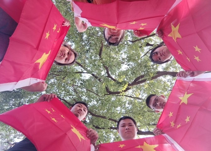 同学们手拿国旗,选取背景,摆放造型。圆形,象征祖国一定能统一,人民一定能团圆;国旗同框,象征祖国的利益高于一切;师生同框,象征中华传统传承接续,代代相传。保安、物业与国旗同框,象征着要为师生做好坚实的服务保障,请祖国放心。总之每一名师生、教职员工都要让鲜艳的五星红旗与自己同框,将祖国印在心间,愿与祖国同呼吸共命运,并为祖国繁荣昌盛奉上绵薄之力。