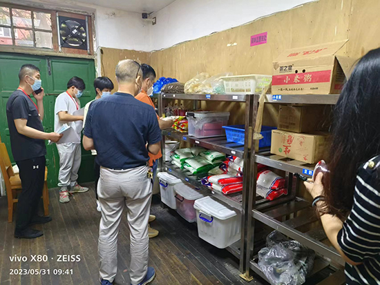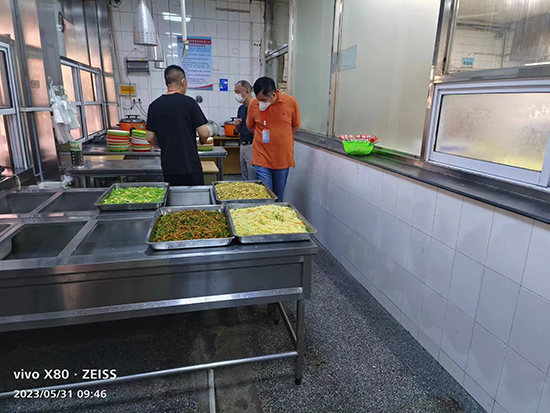 2023年5月31日上午,锡澄校区管理办公室组织校区医务、安保、食品安全员、食品卫生监督员(学生代表)、食堂经理等成员对食堂食品卫生安全工作进行例行联合检查,根据《学校食堂安全、卫生工作考核细则》相关条款,检查结果显示食品安全卫生工作相比之前有了较大进步,但还有一些有碍食品卫生和消防安全隐患的存在。