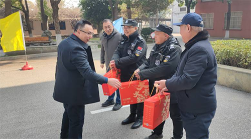 龙行龘龘,欣欣家国。在农历甲辰新年第一天校党委书记、校长李进、党政办公室副主任熊睿以及安全保卫处处长杨俊一行就来到锡澄校区对坚守岗位的值班人员进行新年慰问。