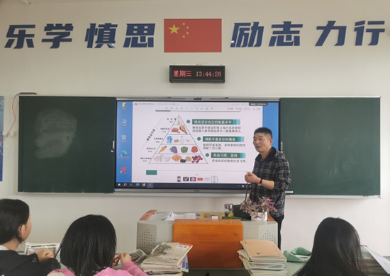 校区管理办公室人员走进教室,和学生们分享校园食品安全和营养健康基础知识,通过生动的案例、直观的图片,深入浅出地讲解了食品安全的重要性、食品选购的要点以及营养搭配的原则。同学们认真聆听,积极提问,现场互动氛围热烈。