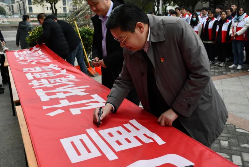 李书记带头在“贡献自己的力量,让环境更美丽”的横幅上签名,表达“让校园更绿、让校园更美”的绿色理念。随后,李书记同后勤党员志愿者、学生志愿者一起,参与义务植树,为生态校园再添新绿。