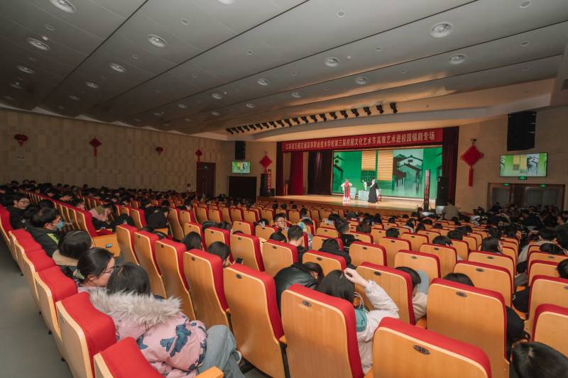 123日,由无锡市锡剧院带来的《薪火相传锡剧精品折子戏专场》在学校大礼堂上演。此次演出的三部戏是由国家一级演员小王彬彬,中国戏剧“梅花奖”获得者王建伟导演的。演出剧目分别为《徐策跑城》《义侠记·戏叔》《杀狗劝妻》这三部经典锡剧非遗传承作品。全校700名左右师生一同观看了此次演出,参加本次江苏省交通政工理论研究专业委员会年会暨优秀政研成果分享会的领导专家也观摩了演出活动。