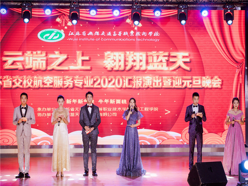 为展示学校航空服务专业学生良好的专业素养和精神风貌,12月9日,学校在大礼堂举办了“蓝天杯”航空服务专业2020汇报演出暨迎元旦晚会。学校党委书记、校长李虎,泰州职业技术学院党委副书记钟文乐,南京蓝天教育集团董事长朱正华出席活动。本次汇报演出由开云·官方端网页版登录入口船舶工程学院承办,南京蓝天教育集团有限公司协办。学校各处室、院部的领导,教师代表、学生代表以及航空服务专业的家长代表700余人参加了本次活动。活动还特别邀请了泰州职业技术学院以及南京蓝天教育集团的领导和嘉宾。