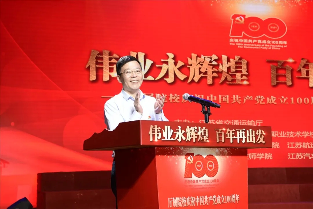 金凌副厅长在致辞中表示,当前,全省需要一批扎根于交通运输、建设、管理、运营、服务一线的高素质技术技能的人员。厅属院校必须把党的成功经验传承好,发扬学校的文化育人工作。引导青年学子从党史中寻找开拓进取的行进方向,从党史中夯实理想信念。金凌副厅长要求要重视交通文化建设,发掘现代交通人的爱岗敬业,敢为人先,勇攀高峰的事迹,大力弘扬劳模精神,劳动精神,工匠精神,引导青年学子树立积极向上的价值观,让每位学生都有机会接受美育。要加强第二课堂建设,依托学生社团开展格调高雅的校园文化,让学生在了解美,感受美,欣赏美,表现美,创造美的过程中感受文化的魅力。金凌副厅长强调,在两个百年的交汇点上,要对照争当表率的要求,全面提升办学水平、服务能力和国际影响力,为我省努力打造交通运输现代化建设示范区,培养更多又红又专的技术技能人才,为江苏交通在强富美高新江苏建设中更好贡献交通学校的力量。