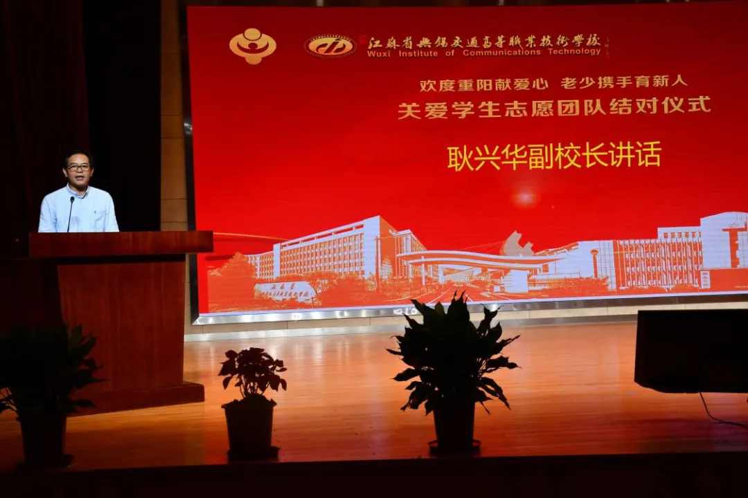 10月14日,学校在致远楼大礼堂举行“欢度重阳献爱心 老少携手育新人”关爱学生志愿团队结对仪式,近90名离退休教职工欢聚一堂,以爱心再现的方式共庆重阳佳节。学校党委书记、校长李虎,党委副书记朱雨兰慰问老同志,并为老同志送上重阳糕点。