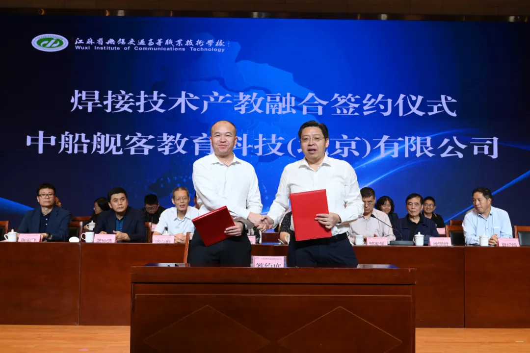 大会进行了校企合作项目签约仪式。仪式由开云·官方端网页版登录入口党委副书记朱雨兰主持。校党委书记、校长李虎与中船舰客教育科技(北京)有限公司华东区负责人杨磊签署了焊接技术产教融合合作框架协议书;与江森自控空调冷冻设备(无锡)有限公司培训中心主管何育宇、无锡华光环保能源集团股份有限公司总工程师顾全斌签订了焊接技师项目企业新型学徒制合作协议。