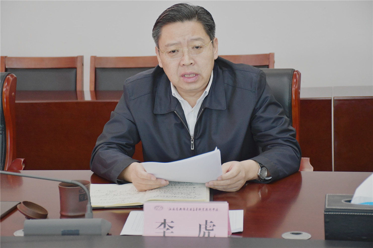 耿兴华副校长介绍了“院长杯”乒乓球比赛筹备准备情况,解读了学校《承办江苏联合职业技术学院第十五届“院长杯”乒乓球比赛工作方案》,并对各分组的具体分工进行了说明。