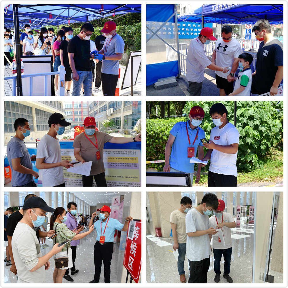 在烈日下,党员志愿者的衣服早就被汗水浸的湿漉漉,皮肤晒的通红,他们依然坚守自己的岗位,坚持战斗在防疫一线,让红色堡垒在一线矗立,让党旗在一线飘扬,让党徽在一线闪亮,充分发挥党员先锋模范作用,把党史学习教育成果转化为疫情防控和服务群众的强大动力,全力打赢疫情防控阻击战。