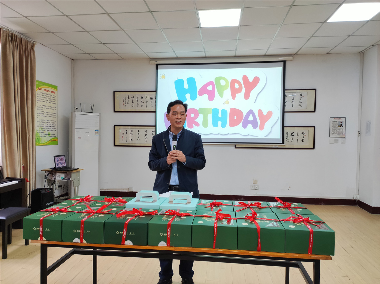 生日会上耿校长转达了校党委对大家的生日祝福,并为本次活动致辞。耿校长对广大教职工们多日来做出的奉献表示赞扬和感谢,他表示教职工的安危冷暖也一直牵动着校领导的心。封校期间,学校配足防疫物资,确保一线抗疫工作人员防护装备的保障到位,并精心组织采购行军床、赠送生活物资、免费提供用餐以及牛奶水果等。当了解到4月份有16名教职员工因住校值守不能回家过生日,特意举办集体生日会,共同为大家庆生。