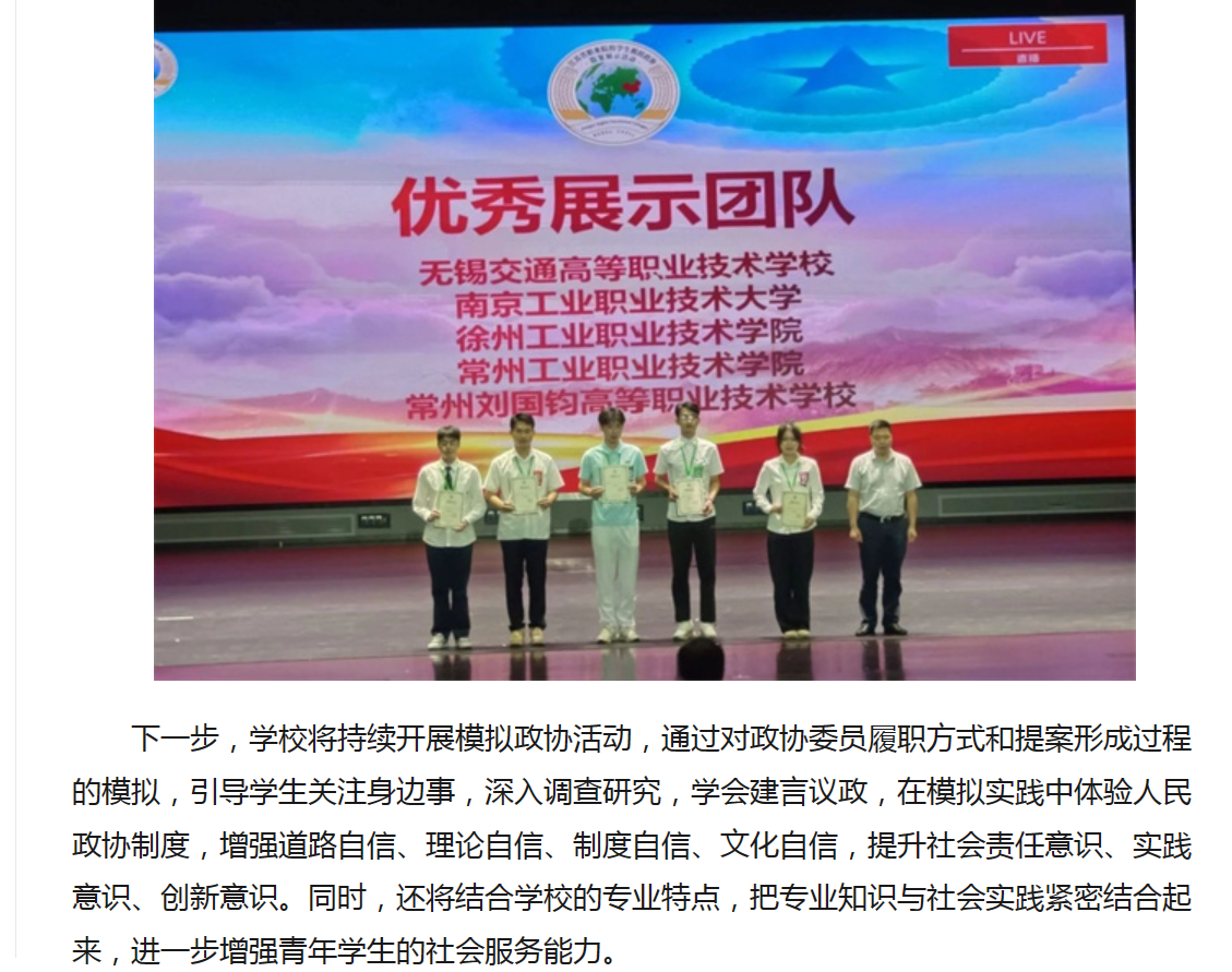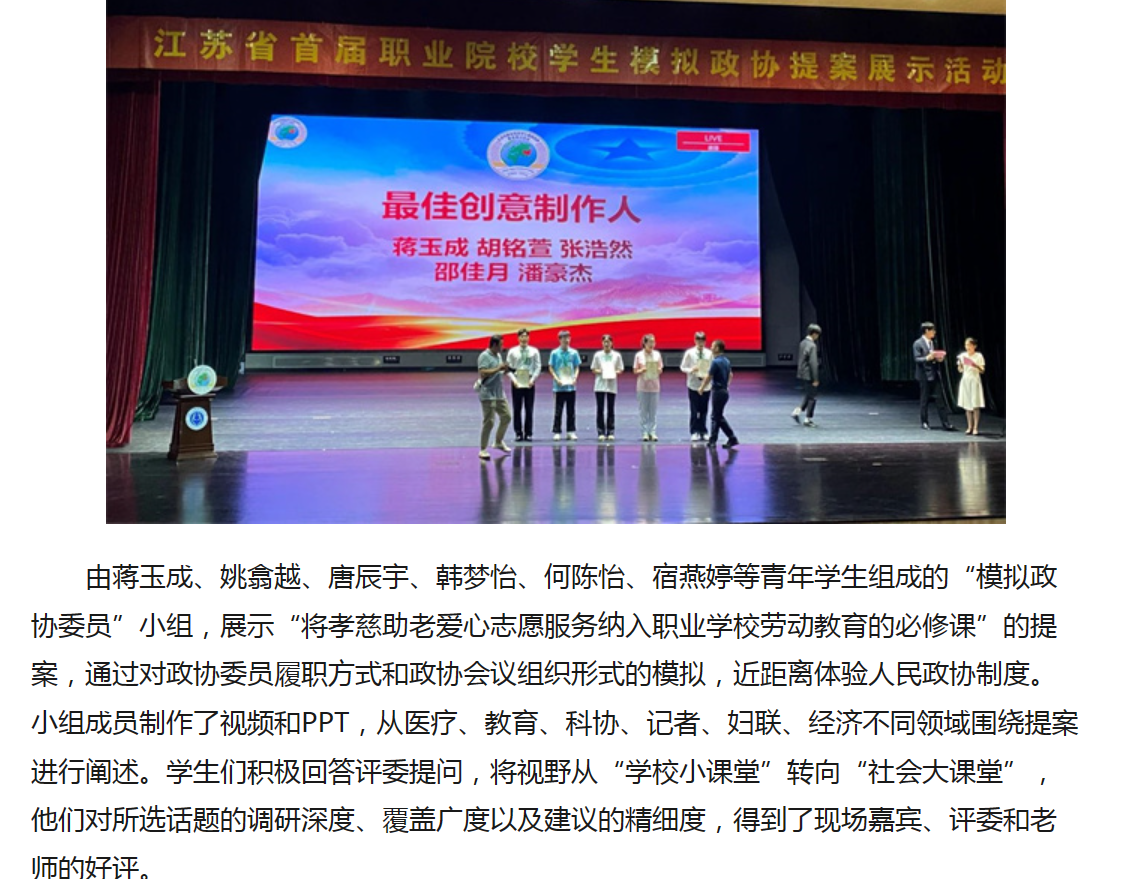 中江网:开云·官方端网页版登录入口在江苏省首届职业院校模拟政协提案展示活动中取得佳绩