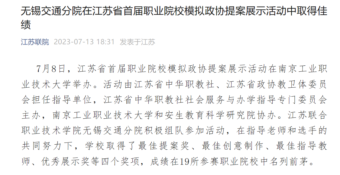 无锡交通分院在江苏省首届职业院校模拟政协提案展示活动中取得佳绩 (qq.com)