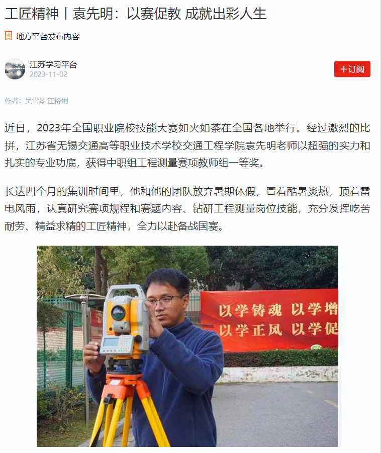 学习强国江苏学习平台:工匠精神丨袁先明:以赛促教 成就出彩人生